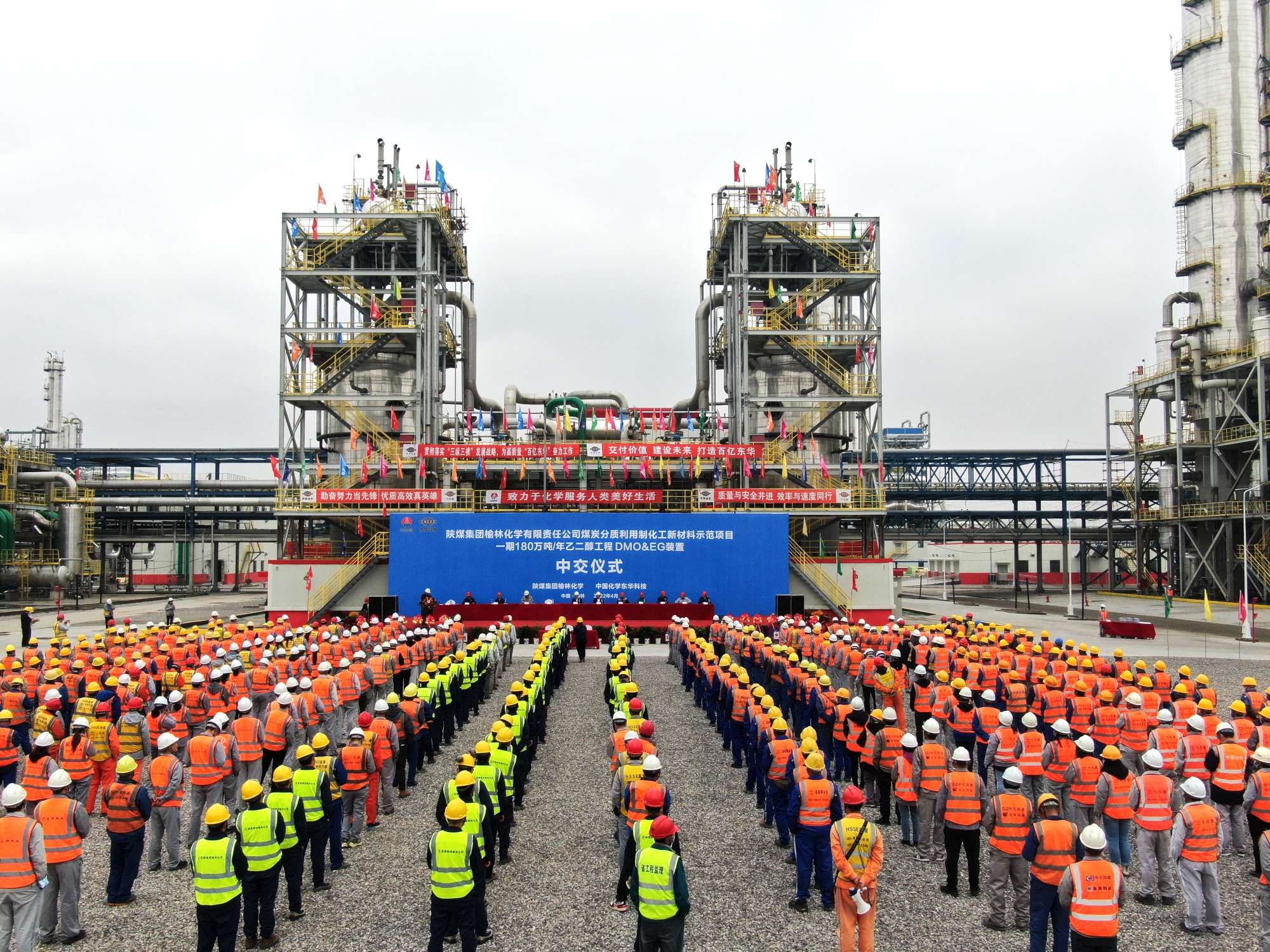 On April 28, 2022, Mechanical Completion Ceremony was successfully held for Phase I Project of 1.8 million t/a Ethylene Glycol Plant of Yulin Chemical Co., Ltd. of Shaanxi Coal and Chemical Industry Group., which was under the general contract (EPC) of ECEC. The ceremony marked the periodic victory of the project.