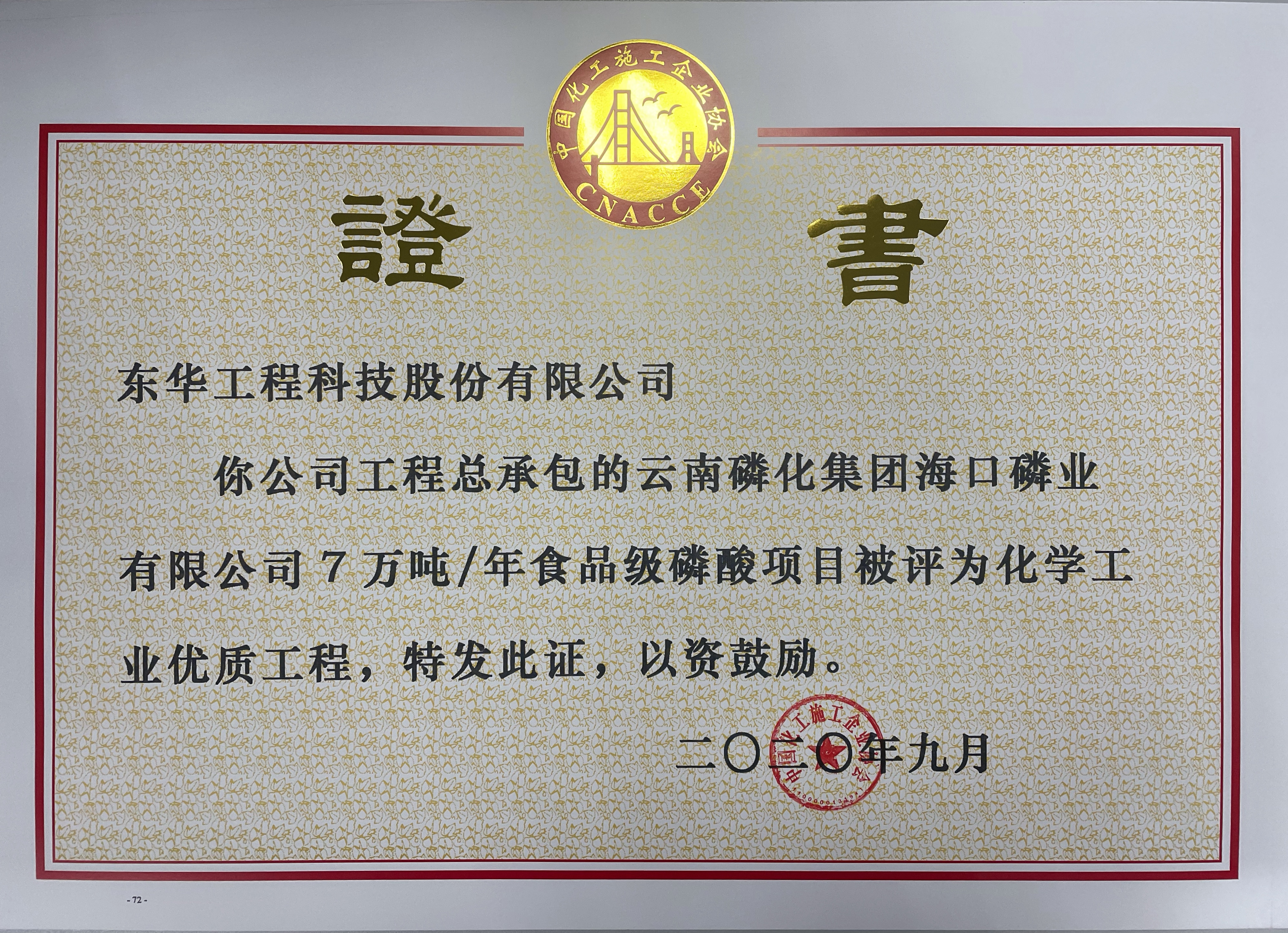 70kt/a food grade phosphoric acid project of Yunnan Phosphate Co., Ltd of Yunan Phosphate Group Co., Ltd.